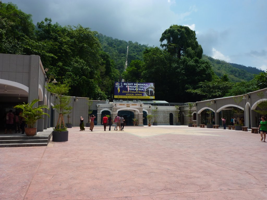 Die Talstation der Penang Hill Railway am 25.4.2011. Der Standseilbahn wurde an dem Tag nach längerer Modernisierungspause mit neuen Wagen aus der Schweiz wiedereröffnet. Die offizielle Eröffnung fand eine Woche später statt.