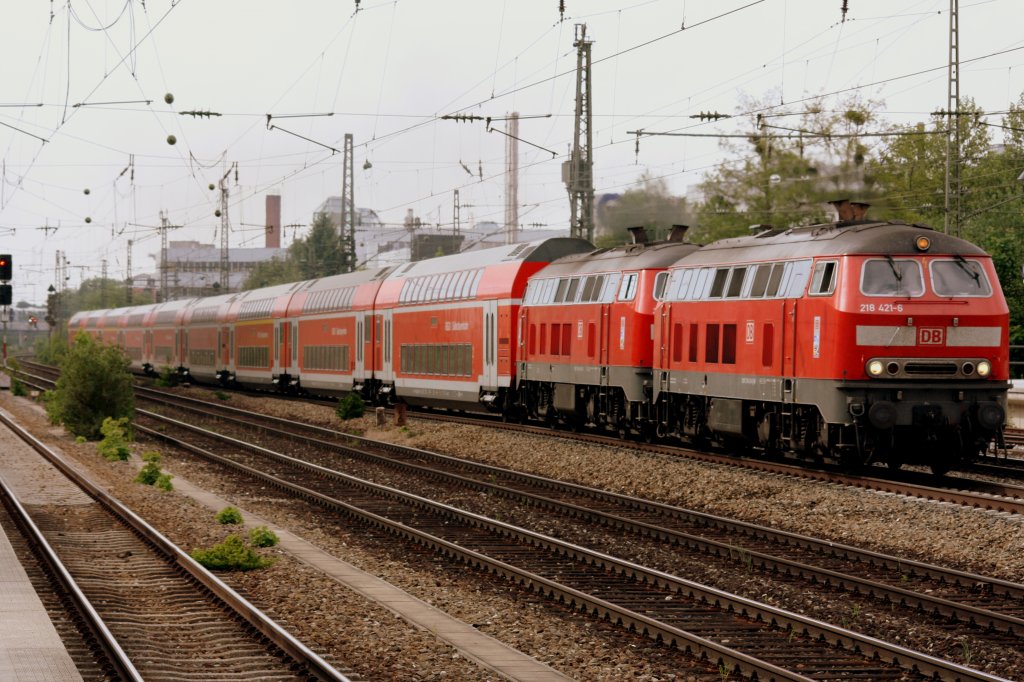 Dieselpower pur im Berufsverkehr nach Mühldorf (Oberbay). Durchfahrt der 2 218er am münchner Heimeranplatz gen Osten am 11.05.2011