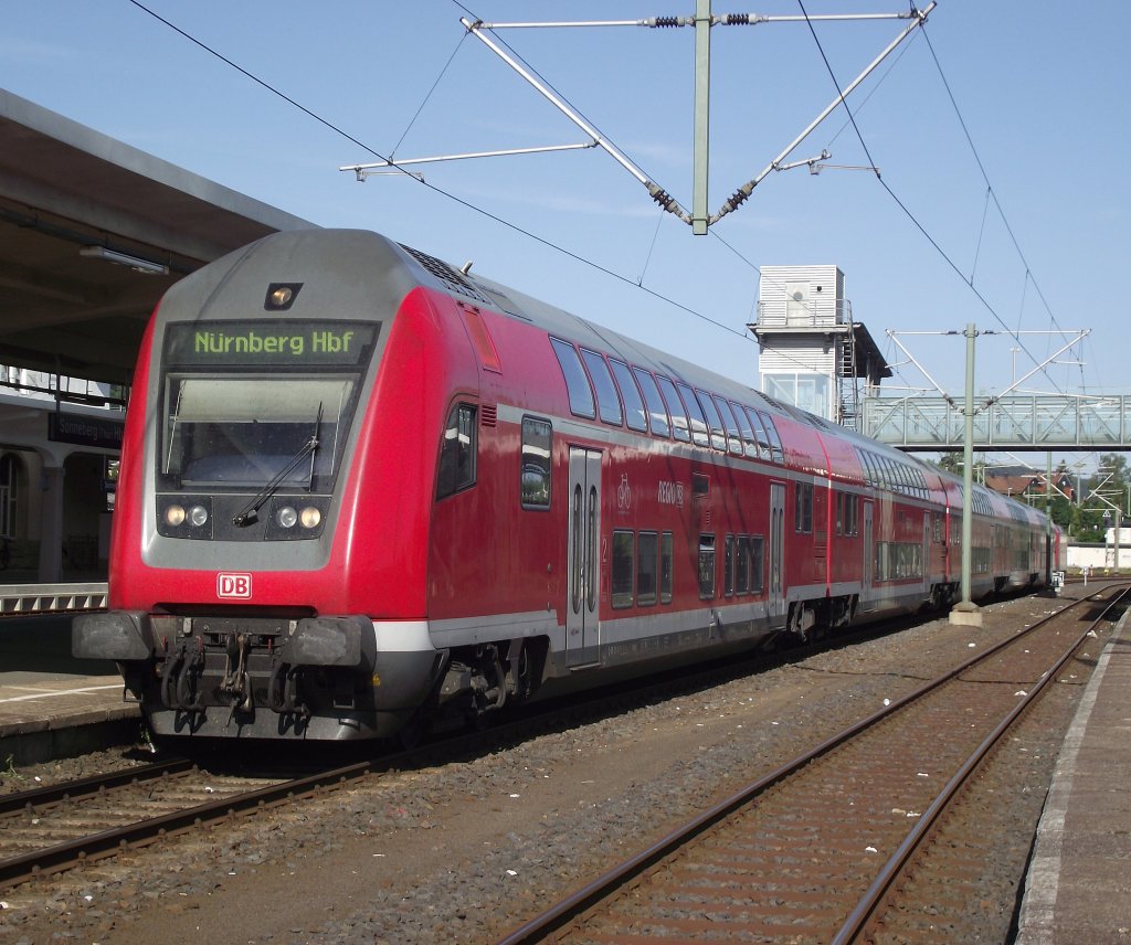 Ein Regionalexpress nach Nürnberg Hbf steht am 16. Juli 2011 in Sonneberg (Thüringen) Hbf.