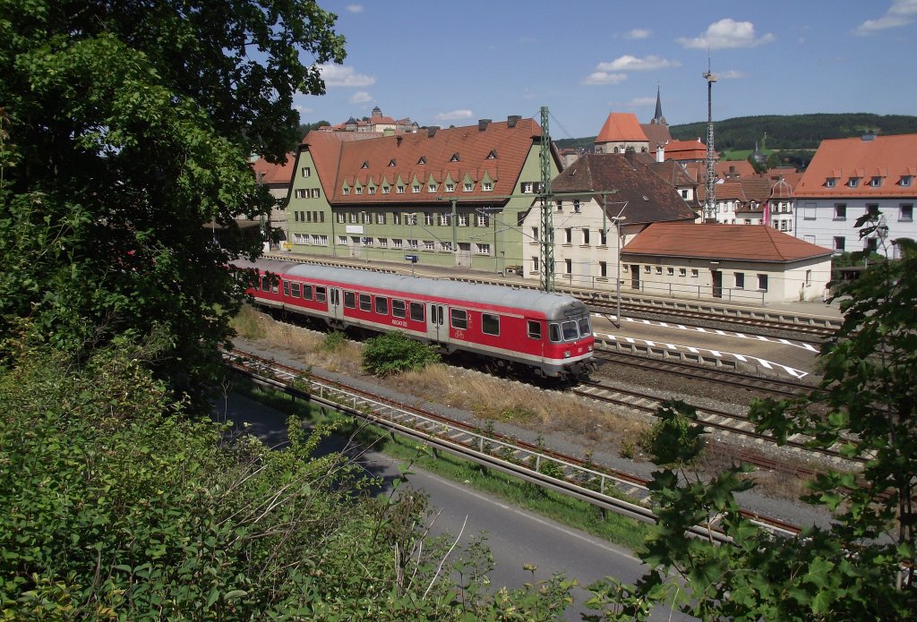 Eine Regionalbahn von Kronach nach Bamberg verlässt am 16. Juli 2011 den Bahnhof Kronach über Gleis 4.