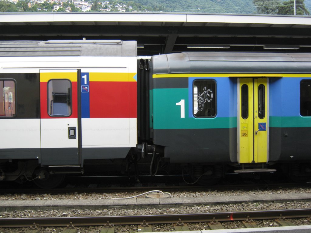 Hier sieht man den Unterschied zwischen EW I und EW II Wagen am besten: Links: A EWI, und rechts ein B EWII, Locarno, 23.07.2011.