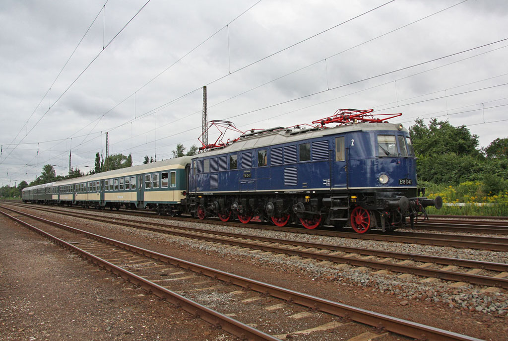 Unter dem Namen "Elbflorenz" beförderte E18 047 am 23.07.2011 einen Sonderzug der Eisenbahnfreunde Treysa von Gießen aus nach Dresden. Hier durchfährt der Zug auf der Hinfahrt Leipzig-Wiederitzsch.