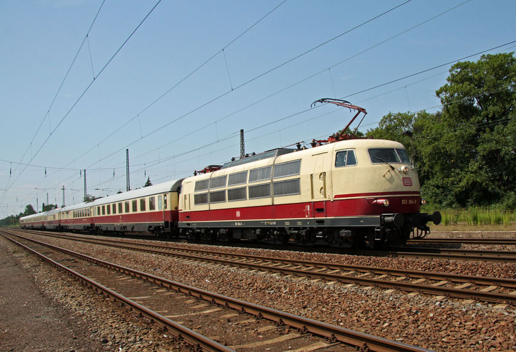 Vom 6.-10.07.2011 führte ein Sonderzug der AKE Eisenbahntouristik den, von 103 184-8 gezogenen, TEE-Rheingold zu mehreren Reisezielen in Sachsen. Hier auf der Hinfahrt am 06.Juli in Leipzig-Wiederitzsch.