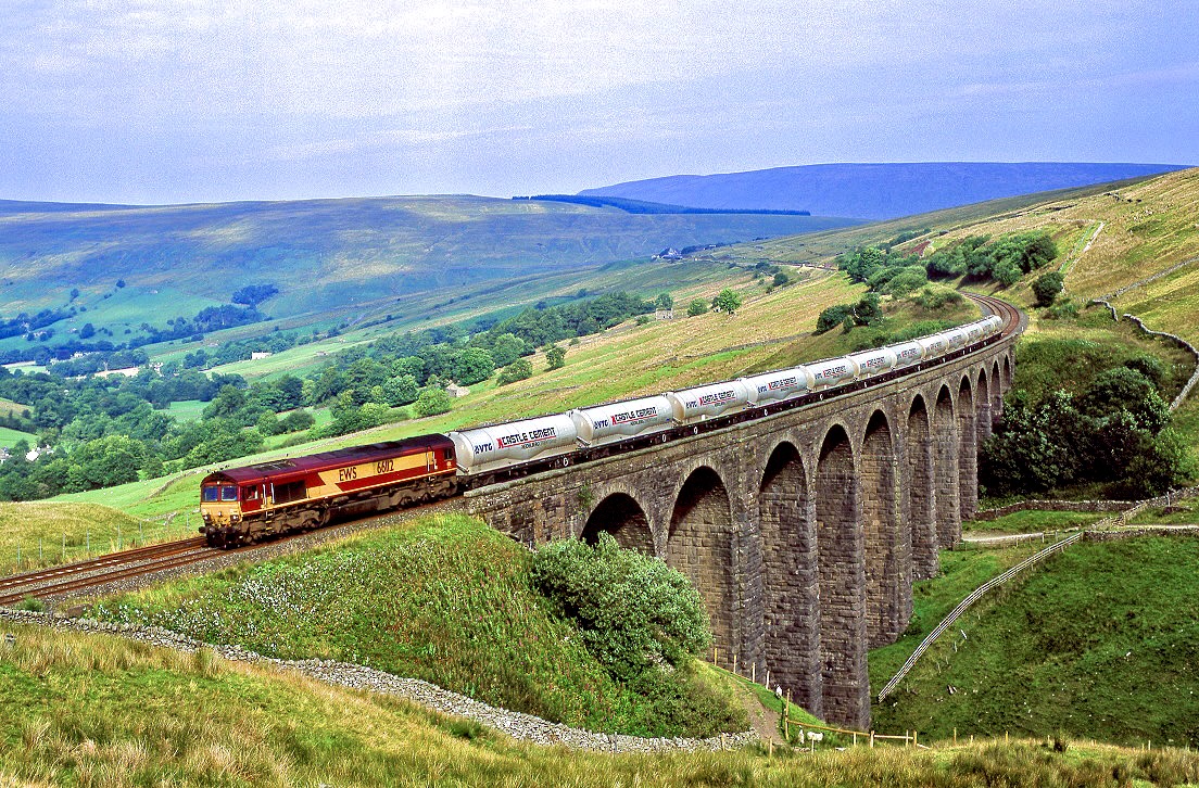 EWS 66112 auf dem Arten Gill Viadukt der Strecke Settle - Carlisle, 02.09.2010.
