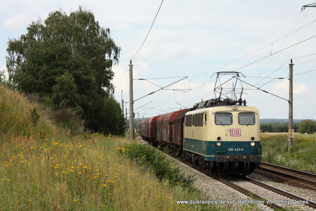 140 423-5 (DB) fährt am 27. Juli 2011 um 12:39 Uhr mit einem Güterzug durch Nudow