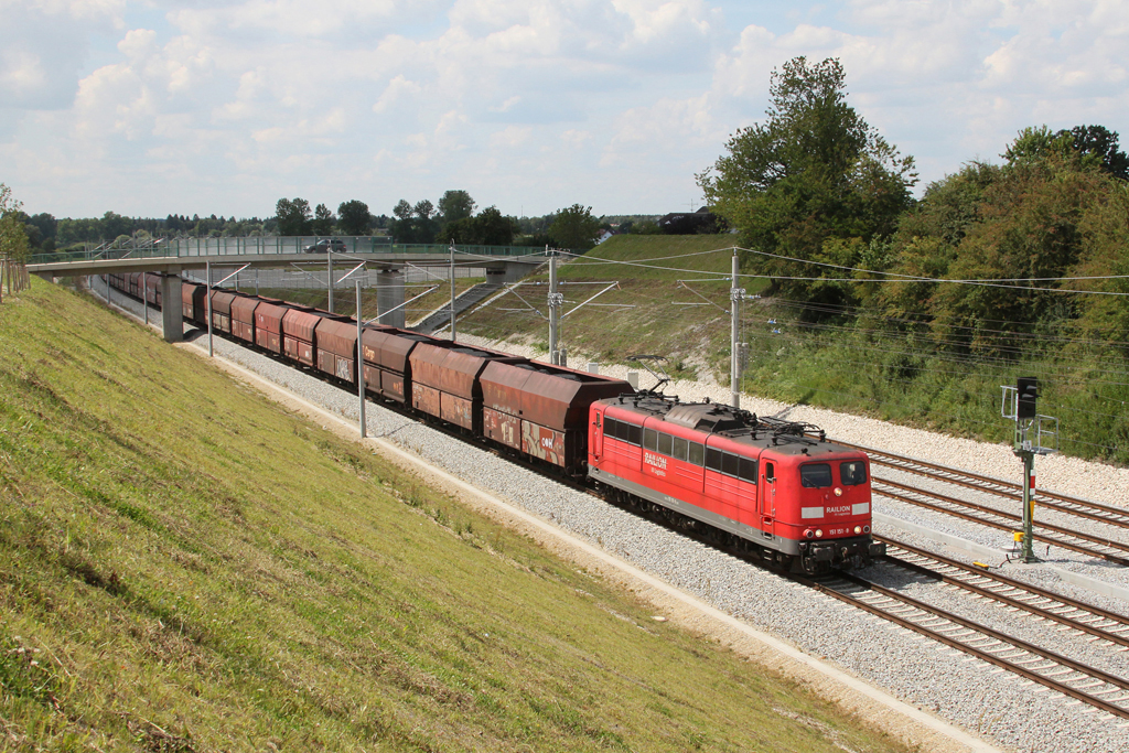 145 002-2 & 151 003-1 (kalt) mit dem Hangartner in Nauen Richtung Friesack(Mark) unterwegs. 28.07.2011