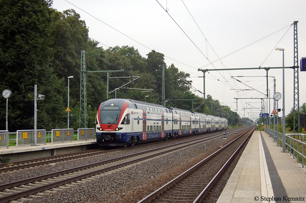 112 139 (DB / "otto hat zugkraft") fährt am 27. Juli 2011 um 13:31 Uhr mit einem IRE Richtung Magdeburg Hbf durch Nudow