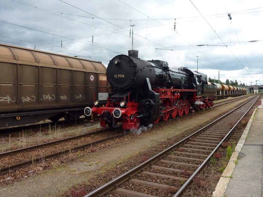 52 7596 setzte am 24.07.2011 in Villingen um. Zusammen mit vier Donnerbüchsen, zwei Eilzugwagen, einem Oppeln und einem Werkstattwagen, sowie einem Ommi51 (ex HzL) wurde sie nach Seebrugg zur IG 3seenbahn überführt. Sie wird in diesem Jahr die dortigen Dampfzüge bespannen.