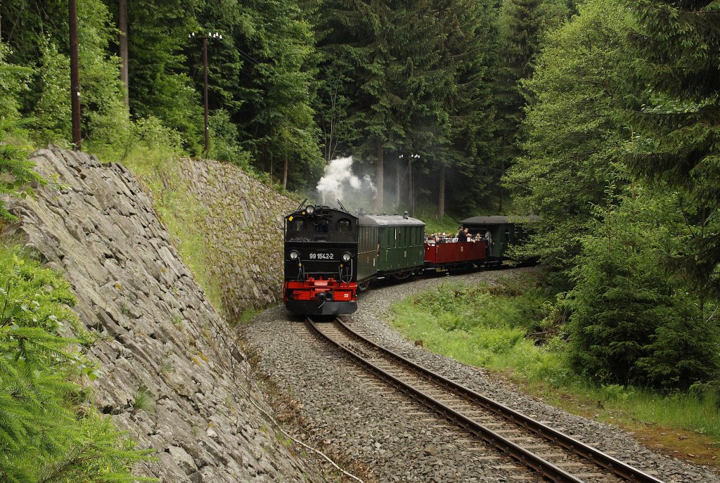 99 4511 ist am 13.06.2011 zwischen Schmalzgrube und Jöhstadt unterwegs.