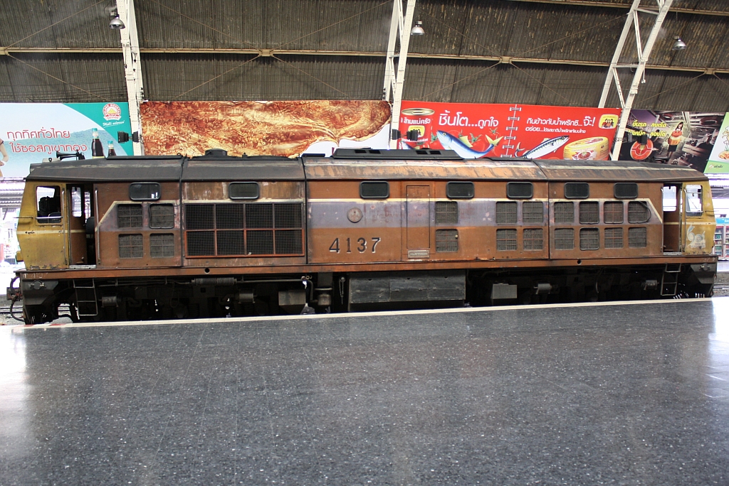 ALS 4137 (Co'Co', de, Alsthom, Bj.1974/75) am 19.März 2011 auf Gleis 5 in der Halle des Bf. Hua Lamphong.