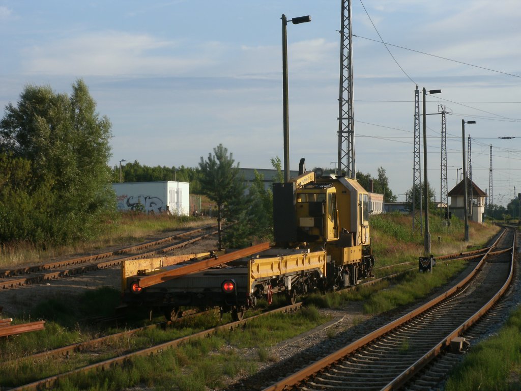 Am Abend,vom 27.Juli 2011,war dieses Gleisarbeitsfahrzeug in Bergen/Rügen unterwegs zur Nachtschicht.