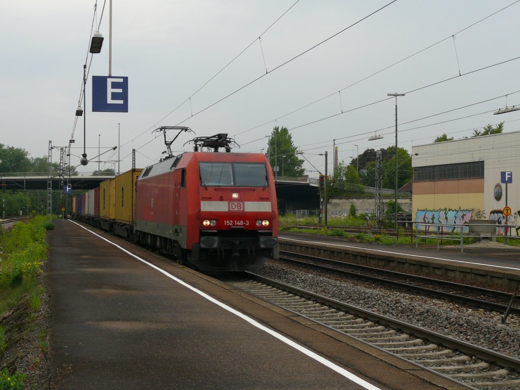 Auch am 27.7. wollte sich der Sommer nicht wirklich zeigen, hier 152 148 mit einem GZ durch Göppingen.