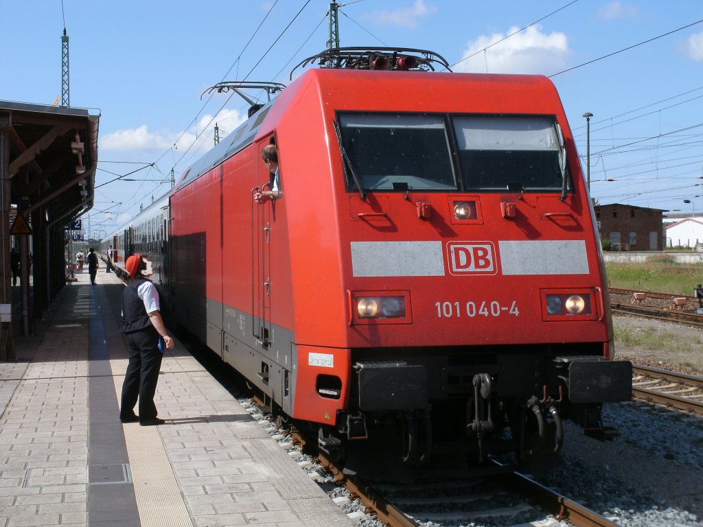 Auch wenn es nur zwei Minuten Aufenthalt,für den IC 2384 Hannover-Binz,am 27.Juli 2011,in Bergen/Rügen waren das Gespräch zwischen Lokführer und dem Servicepersonal mußte sein.