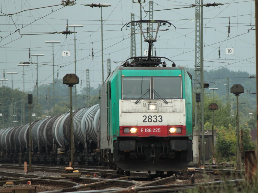 Mit nur acht Kesselwagen am Haken kommt 151 001-5 am 26.07.2011 aus Richtung Köln nach Aachen West.