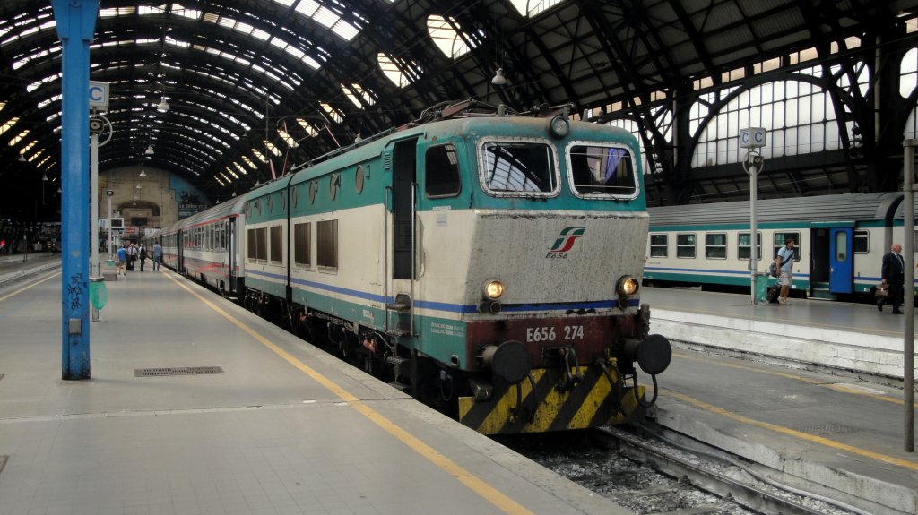 Hier E414.128 als ESC9713 von Milano Centrale nach Venezia Santa Lucia, dieser Triebzug stand am 11.7.2011 in Milano Centrale.