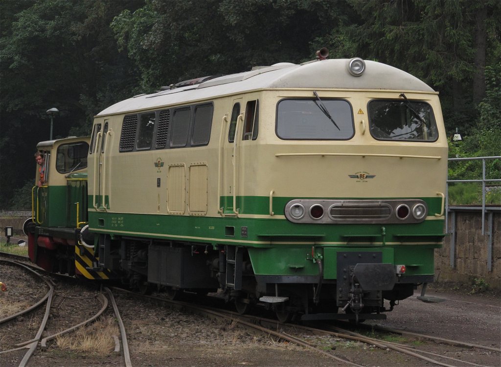 Die  Schmalspur V160  aka D5 geschoben von der O&K Diesellok D2. Brohl-Lützing am 28.7.2011.