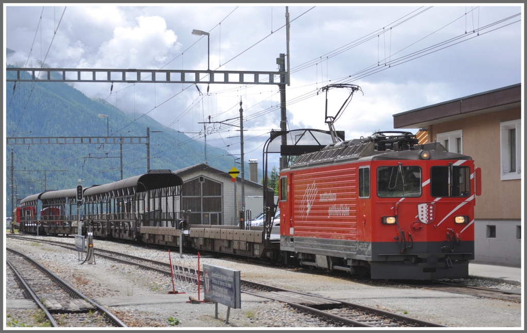 Ge 4/4 III 81 "Wallis" mit Autozug in Oberwald. (21.07.2011)