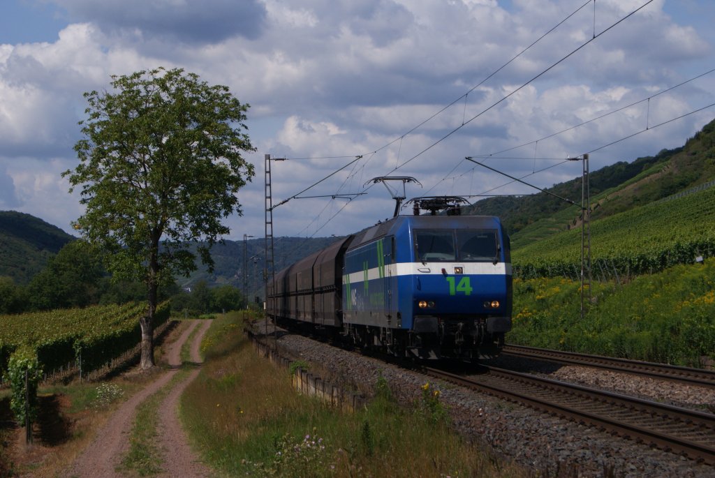 NIAG 145 086-5 mit einem Kohlezug nach Moers in Pommern an der Mosel am 25.07.2011