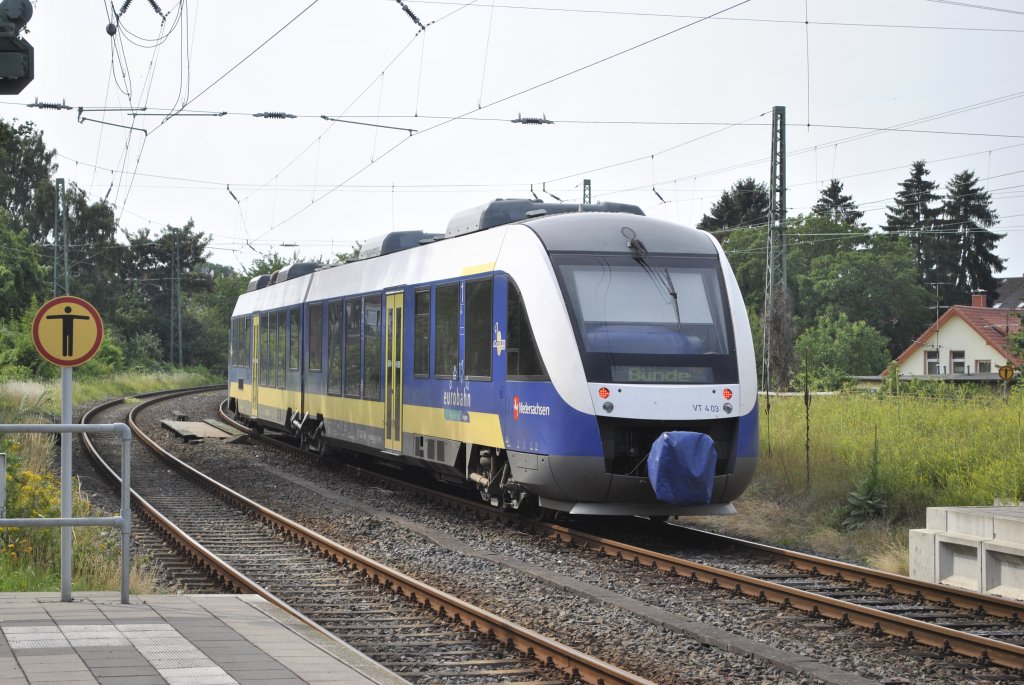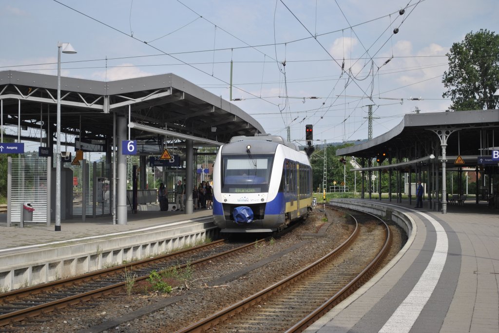 Triebwagen der BR 648 der Eurobahn verlässt Hameln am 12.07.2011.
