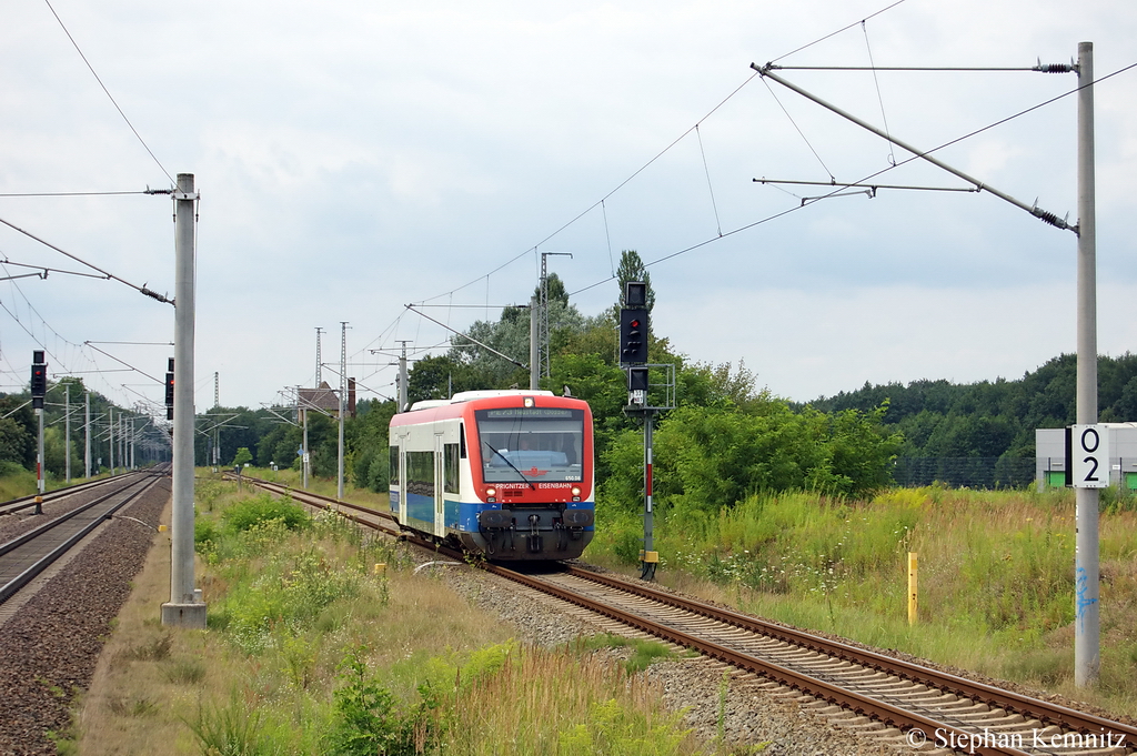 VT 650-08 (650 569-6) der Prignitzer Eisenbahn GmbH als PE73 (PEG79655) von Pritzwalk nach Neustadt(Dosse) bei der Einfahrt in den Bahnhof Neustadt(Dosse). 28.07.2011