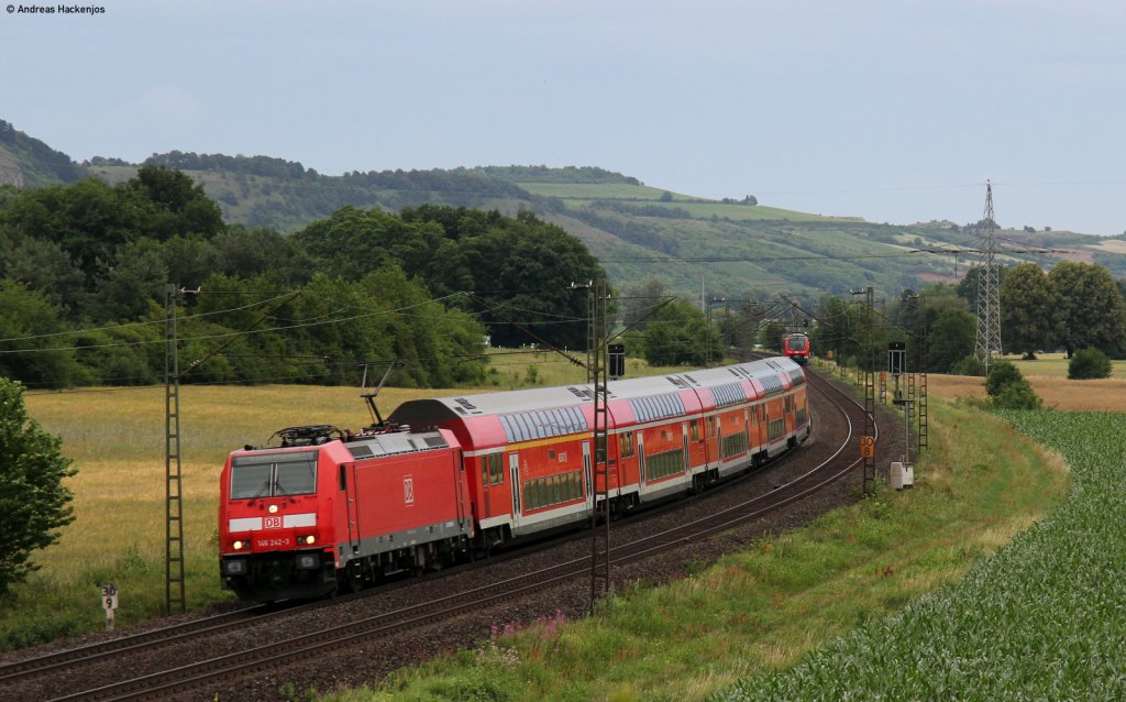 Hier kam dann der RE 18208 (Falkenberg - Stralsund) mit 114 022 um 8:33 an uns und Gräfendorf vorbei. Hier hatte er Dank der vier nicht pünktlichen FV-Züge schon gute 15 Minuten Verspätung, die sich ebenso wieder weiter trugen ... aber so ist das, wenn man viel zu viele Züge auf einer  zu kleinen  Strecke durchlassen möchte. Im Endeffekt waren sie alle nicht pünktlich. 01.07.2011