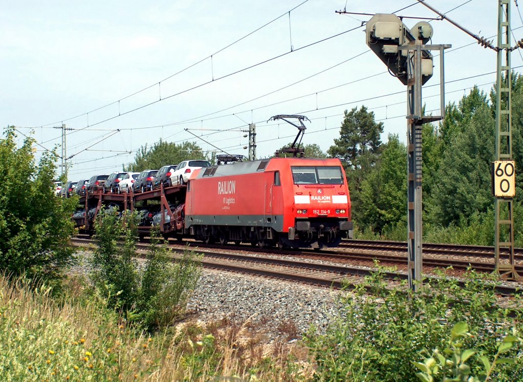 Die 110 438-9 fuhr am 03.07.2011 mit einem Autozug durch Angermund.