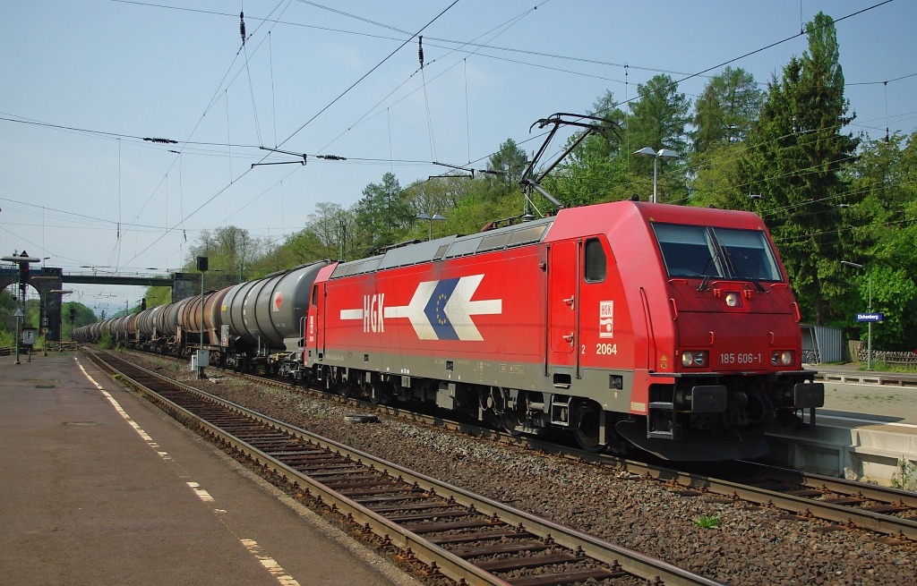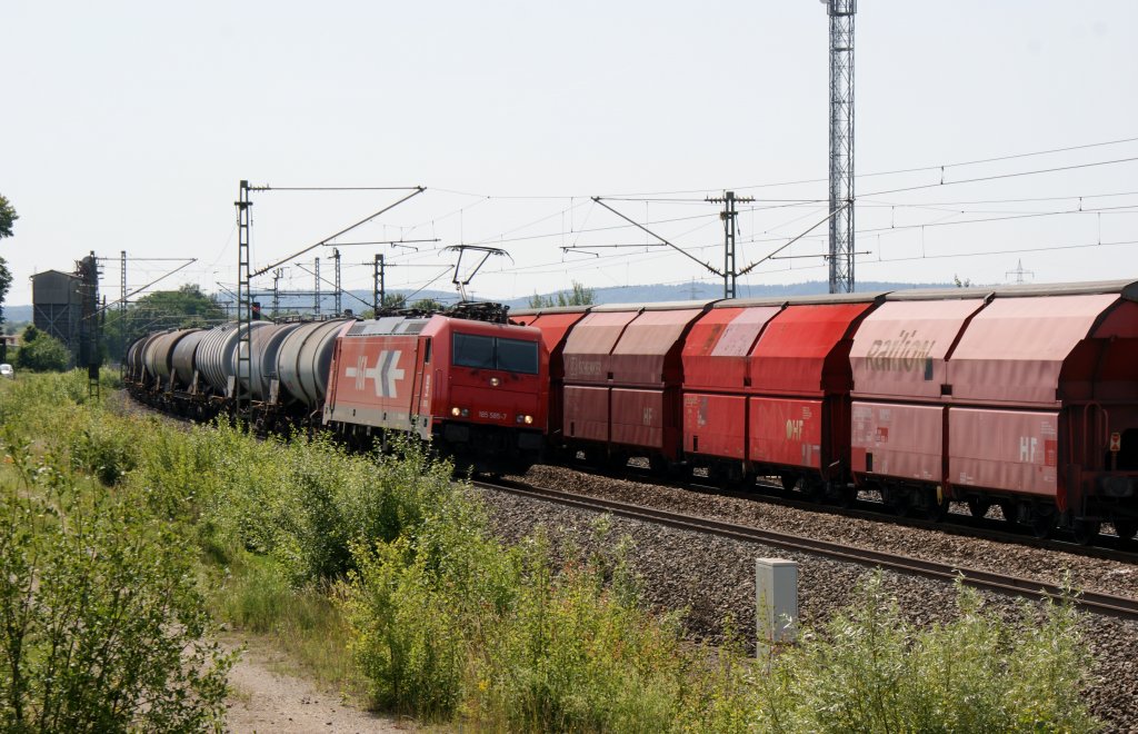 185 585-7 der HGK mit einen Kesselwagenzug in Markt Einersheim am 29.06.2011