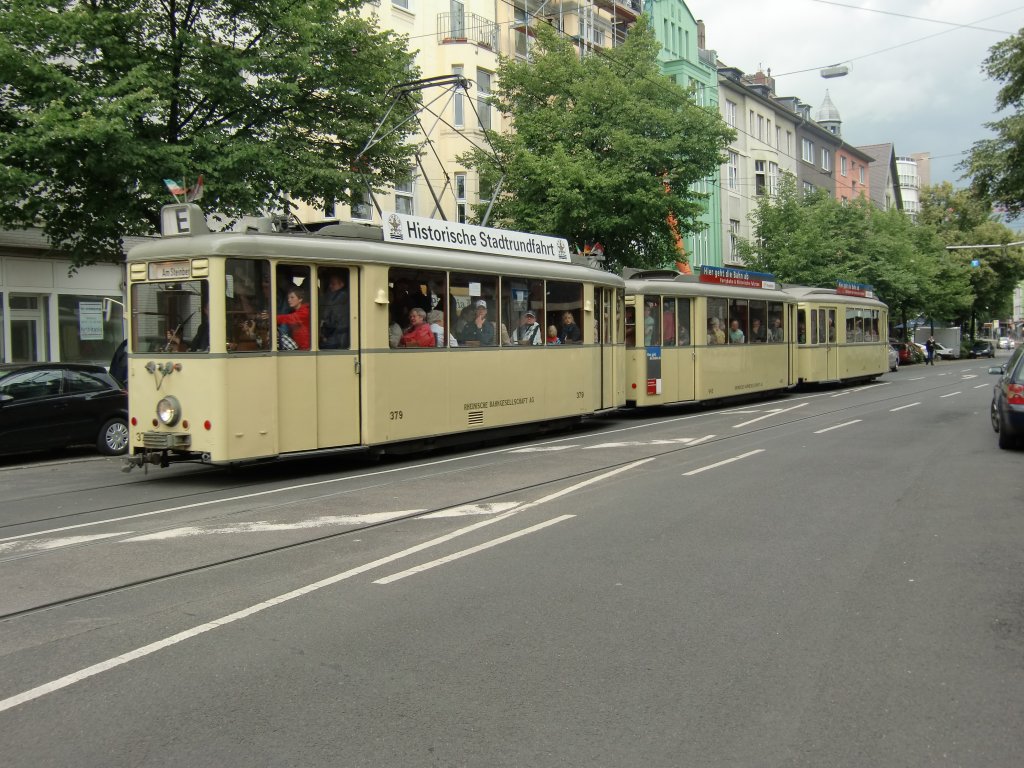 Aufbauwagen TW379 + 2 Beiwagen in Düsseldorf bei der Strassenbahnparade zum Abschied des Betriebshoffes "Steinberg" (19.06.2011)