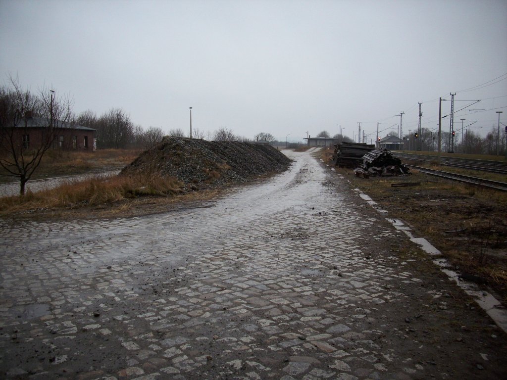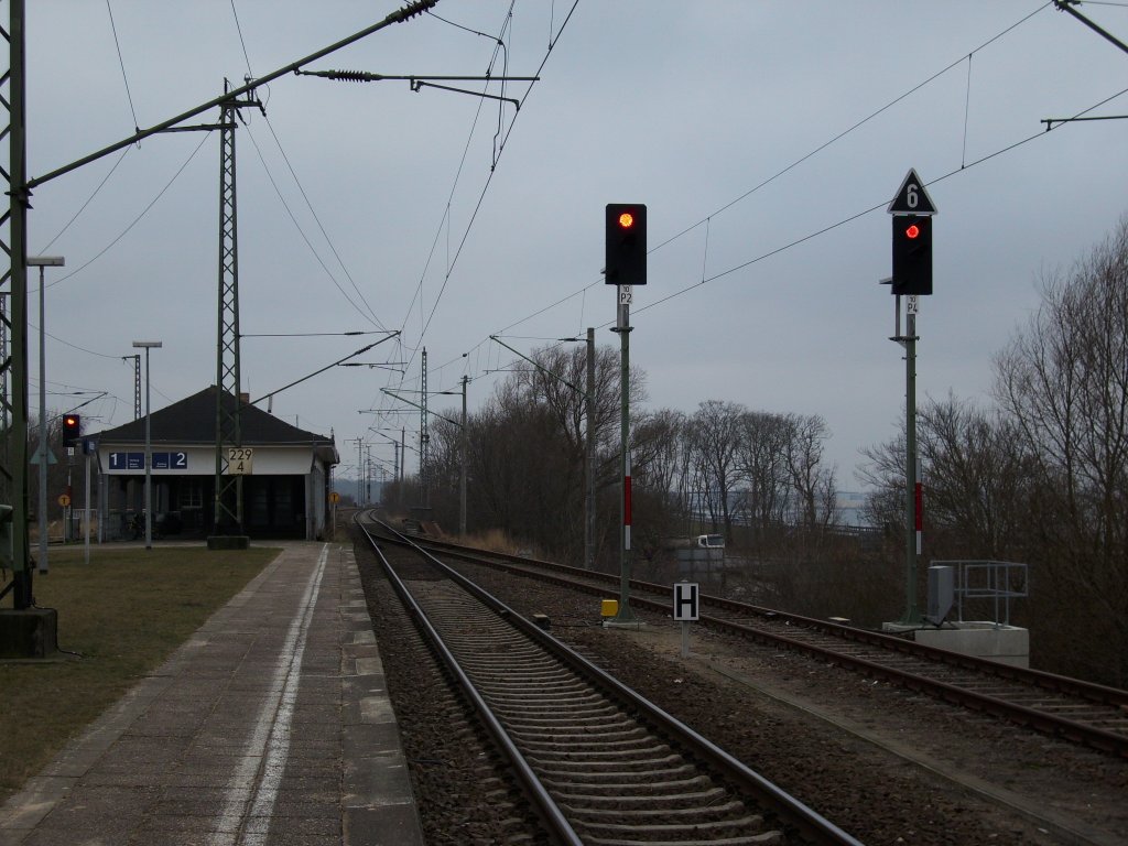 Ausfahrbereich Richtung Festland in Altefähr am 23.Januar 2009.Hinter der Ausfahrt Richtung Festland beginnt der eingleisige Rügendamm,so das es in Altefähr vorkommt das ein Zug,egal um was es für ein Zug sich handelt,warten muß wenn ein Zug auf dem Rügendamm ist.Das rechte Gleis ist das einzige Überholgleis von Altefähr für Güterzüge.