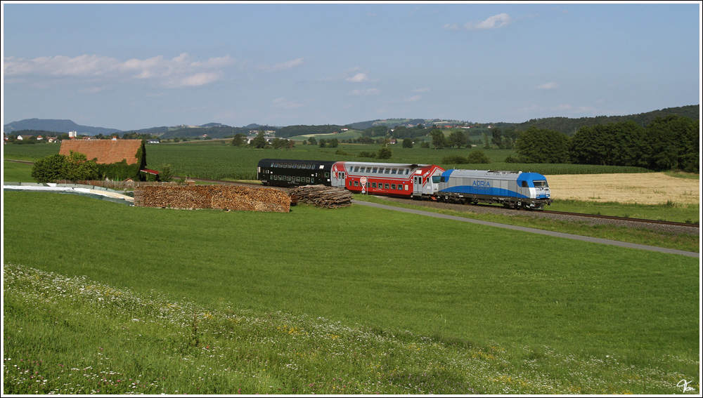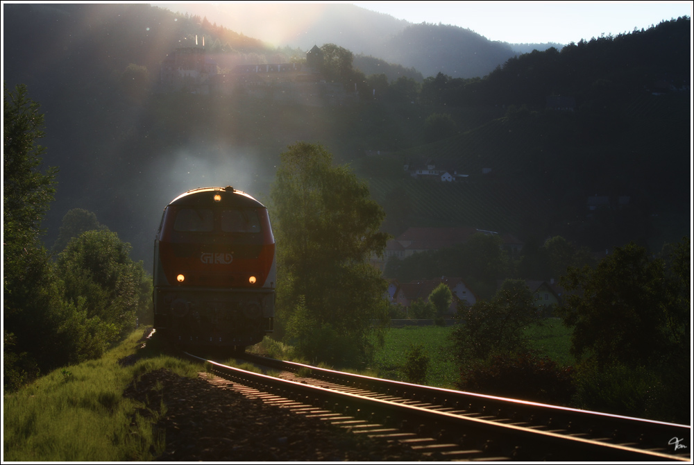 Teleaufnahme der Heros Diesellok 218 156 welche als R 4377 von Graz nach Wies Eibiswald unterwegs war. Frauental 27.6.2011