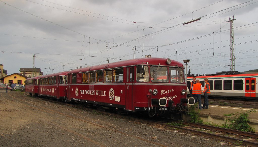 Förderverein Schienenbus e.V. 798 469-2 + 998 417-9 + 998 554-9 als Sonderzug zu  Rhein in Flammen  aus Stuttgart Hbf, im Bf Rüdesheim (Rhein); 02.07.2011