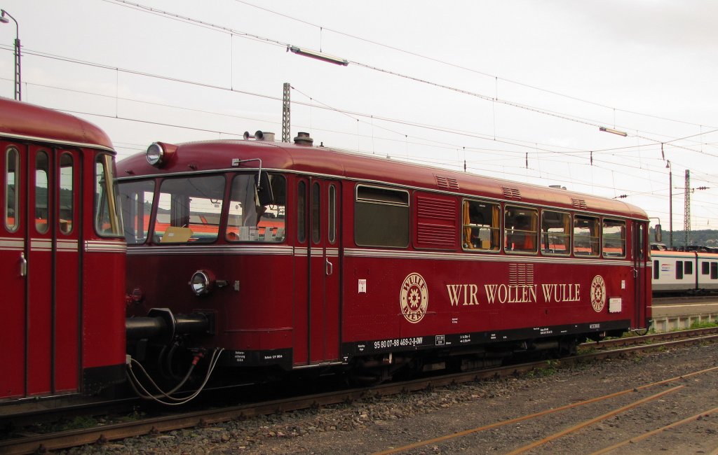 Draisine Klv 20-5011. Von diesen VW T1 Draisinen wurden 1955 30 Stück für die Deutsche Bundesbahn gebaut (Klv 20-5001 bis Klv 20-5030). Nur noch 7 dieser schönen Fahrzeuge sind erhalten geblieben. Angetrieben wurden sie von einem 24PS Benziner Boxermotor. Zu sehen war dieses Schmuckstück beim Bahnhoffest am 03.07.2011 in Walheim, das von den Eisenbahnfreunden Grenzland veranstaltet wurde.