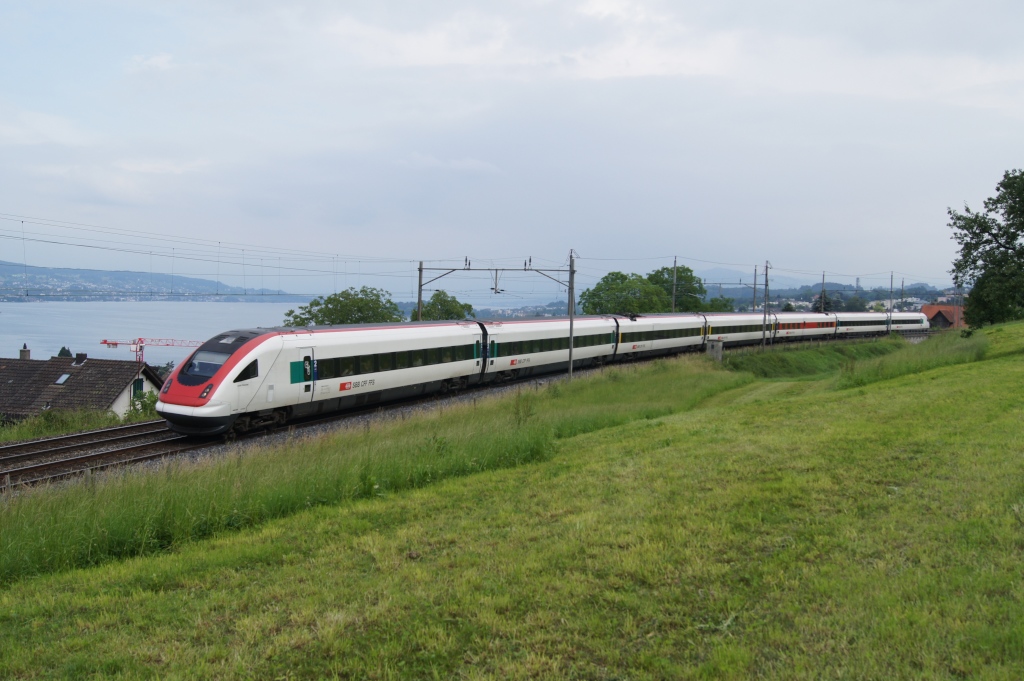 Ein ETR 470 (Cisalpino) am 27.06.2011 auf der Gotthard Strecke bei Wassen.