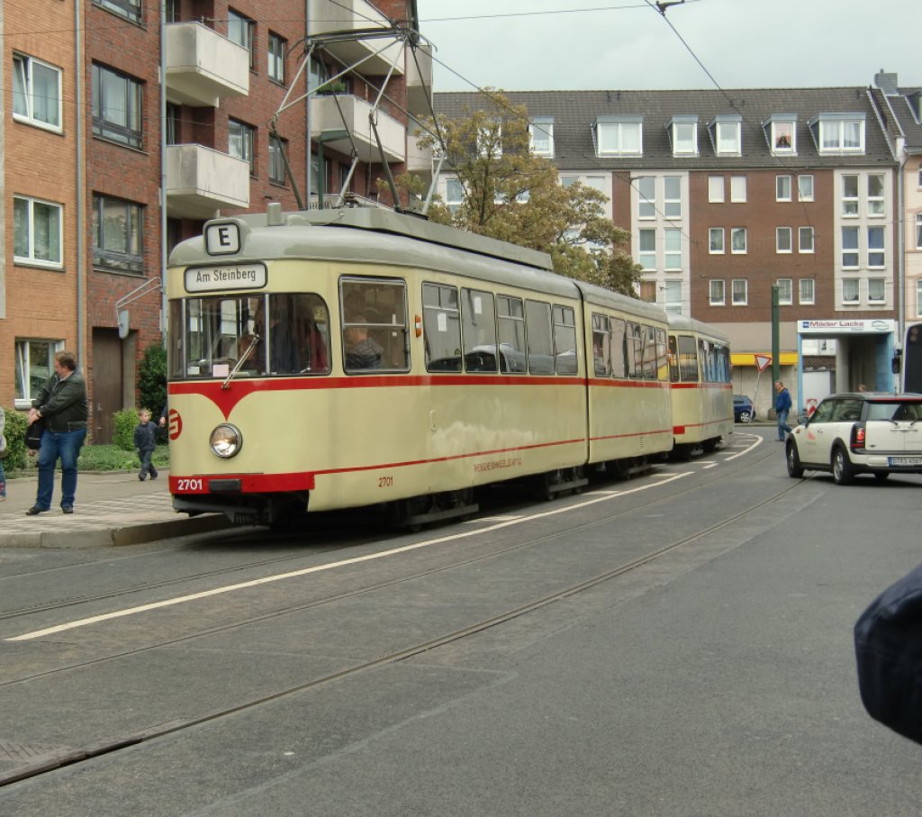 Sechsachser TW2701 in Düsseldof Steinberg bei der Strassenbahnparade zum Abschied des Betriebshoffes "Steinberg" (19.06.2011).