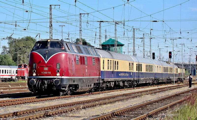 V200 116 am historischer Rheingold im Hbf Stralsund. am 27.06.11