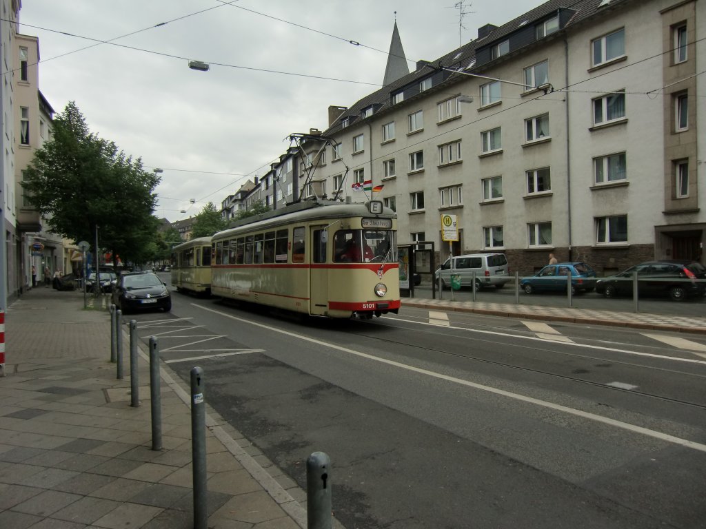 Vierachser (TW5101) + Beiwagen in Düsseldof bei der Strassenbahnparade zum Abschied des Betriebshoffes  Steinberg  (19.06.2011).