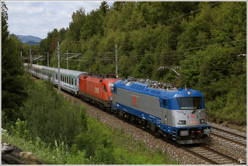 Re 446 016 mit einem Voralpenexpress am 27.06.2011 bei Biberbrugg.