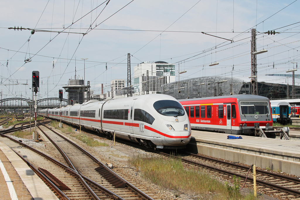 403 001 und 403 054 „Frauenfußball Weltmeisterschaft 2011“ (natürlich an 2. Stelle...) als ICE 527 am 31.05.2011 bei der Einfahrt in München Hbf.