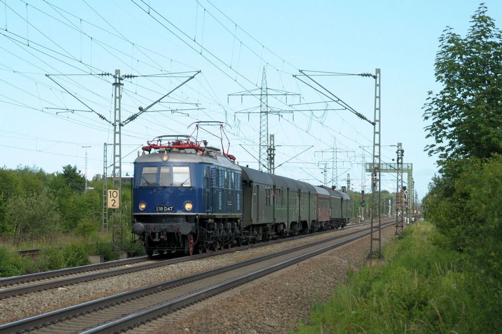 E18 047 am 12.06.11 mit DPE 337 Treuchtlingen-Garmisch in München-Langwied