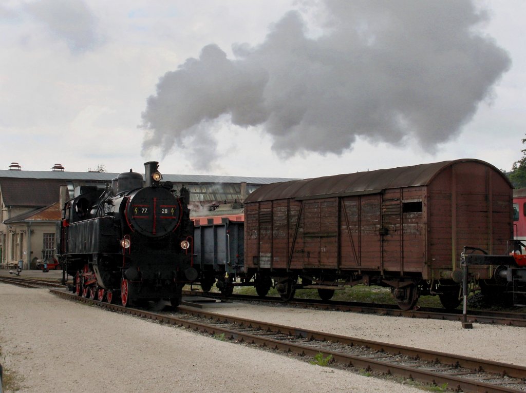 Die 77 028 am 12.06.2011 bei einer Rangierfahrt im Ampflwanger Museum.