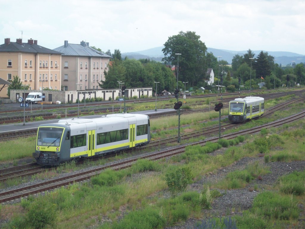 Ein abgestellter Triebwagen der Agilis in Kirchenlaibach, ein zweiter kommt hinzu. 13.06.11
