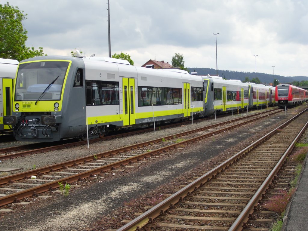 VT612 der DBAG im Bahnhof Neuenmarkt-Wirsberg als RE3005 Richtung Bayreuth am 12.06.2011