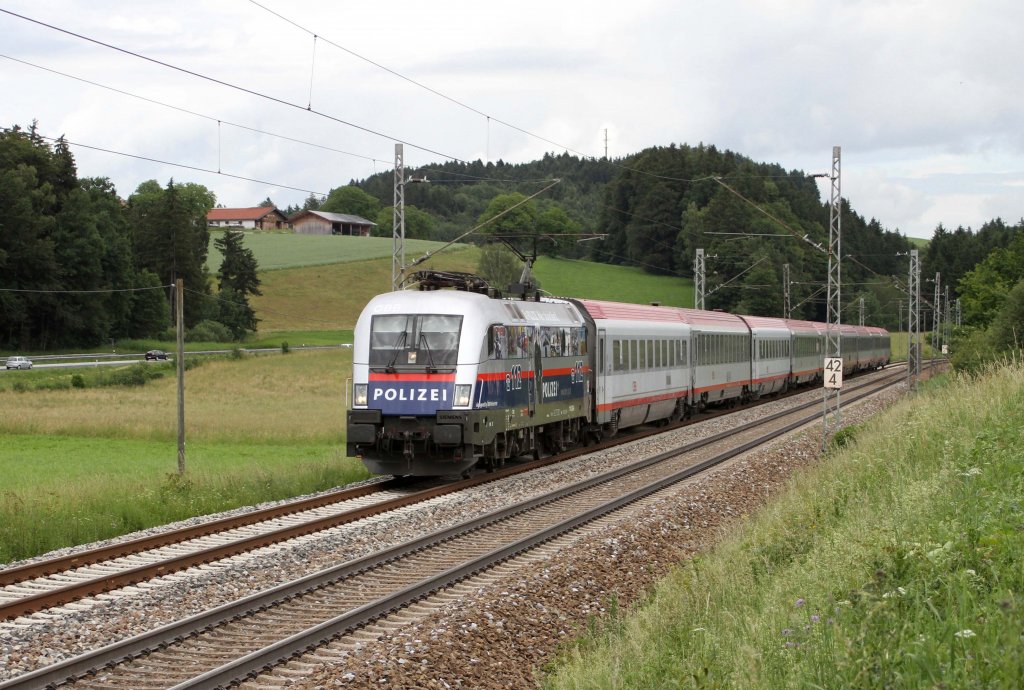 Die ÖBB - Polizei mit OEC 862 als Korridorzug Richtung Kufstein am 14.06.2011 bei Übersee.