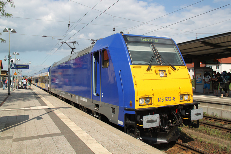 Auch eine nackige 146er kann schön aussehen:hier steht 146 522-8 mit InterConnex 68904 von Warnemünde nach Leipzig Hbf kurz nach der Ankunft im Bahnhof Neustrelitz.(17.06.2011)