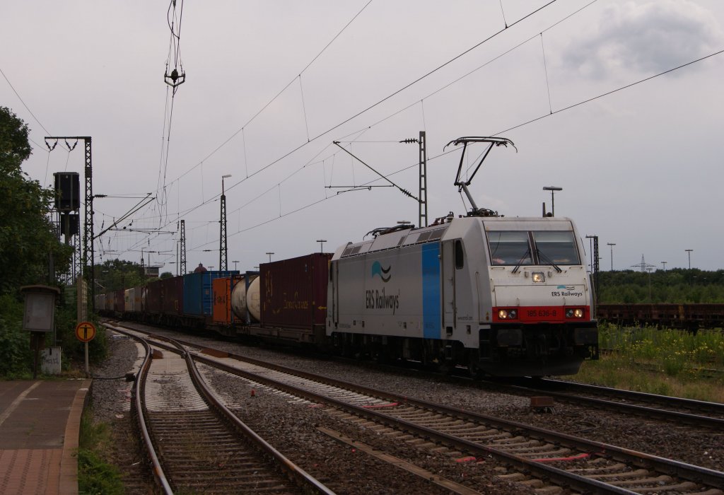 ERS 185 636-8 mit einem Containerzug in Duisburg-Bissingheim am 17.06.2011