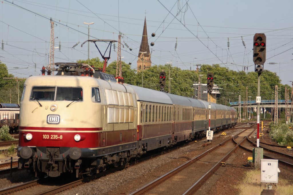 Wie in guten alten Zeiten: 103 235-8 mit ihrem IC in Köln Hbf am 17.04.2011.
