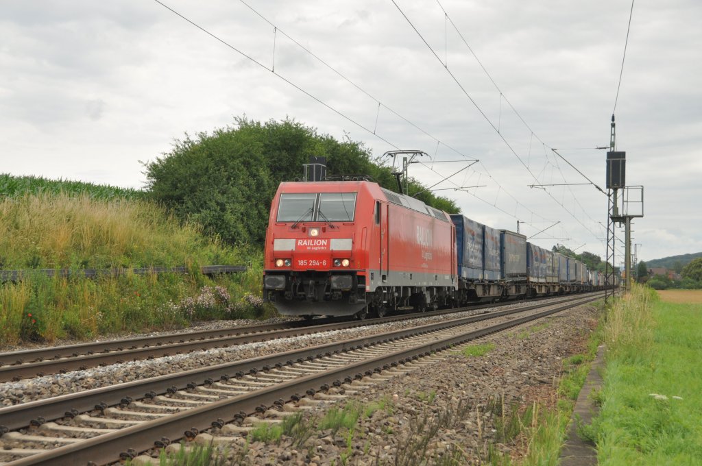 185 294 mit KLV-Zug Ri.Kornwesheim.Aufgenommen bei Ebersbach/Fils am 23.6.2011