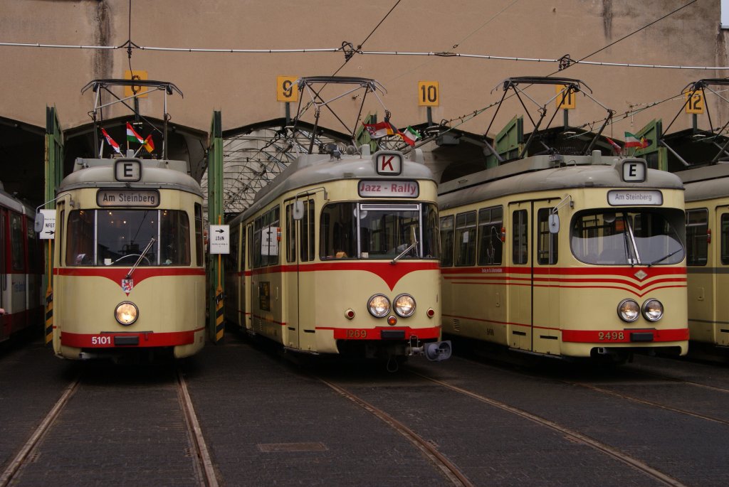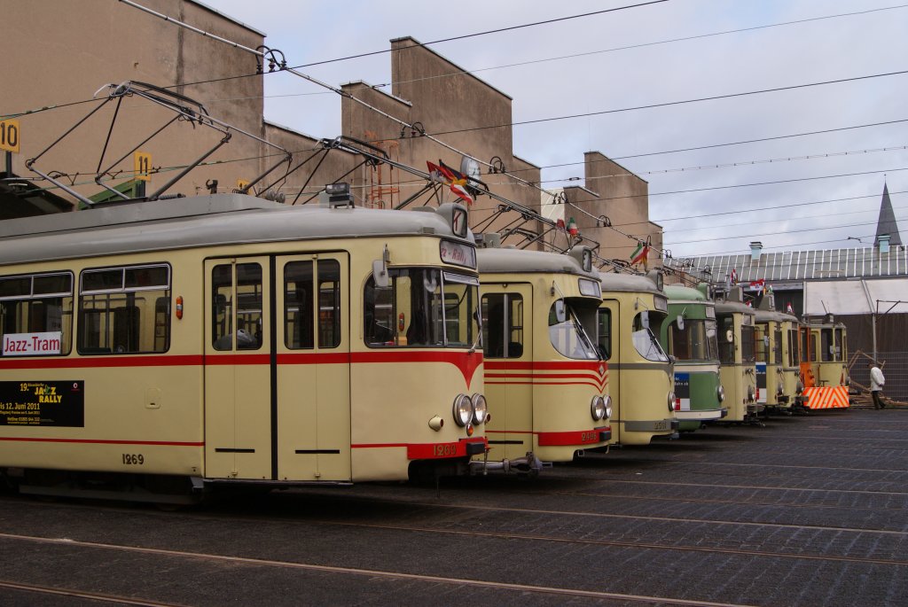 Abschied nach 103 Jahren ! Am 19.06.2011 öffnete das Rheinbahn Betriebswerk Am Steinberg zum letzten mal seine Tore. Hier sieht man Tw 5101, Tw 1269 und Tw 2498. (Düsseldorf)