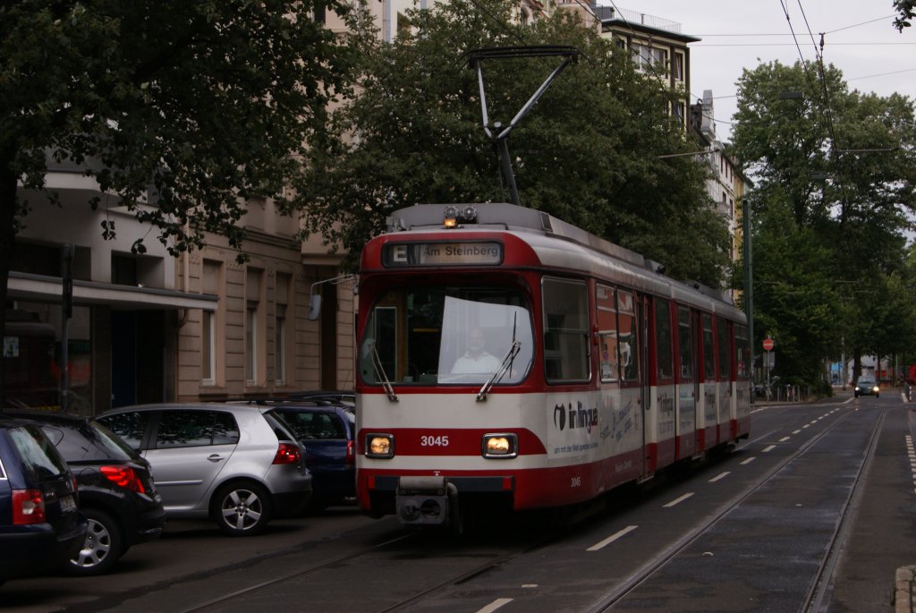 Tw 3045 als Zubringerzug vom Düsseldorfer Hbf zum Betriebshof am 19.06.2011 an der Morsestraße in Düsseldorf