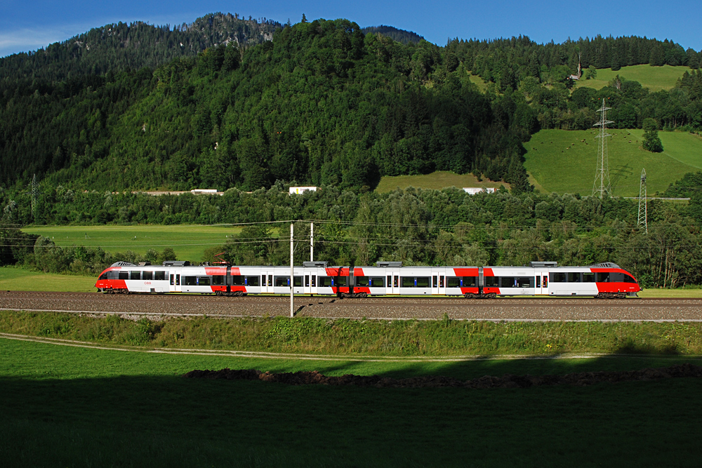 Ein unbekannter 4024 fährt am 11.08.2008 als REX nach Selzthal, aufgenommen bei Wald am Schoberpass. Im darauffolgenden Winter ging fast exakt an dieser Stelle eine Lawine ab und machte die Strecke für einige Zeit unpassierbar.